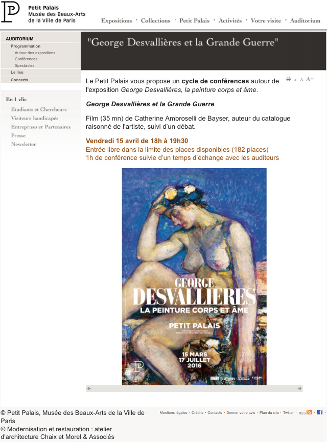 Annonce du vendredi 15 avril 2016 / Auditorium du Petit Palais