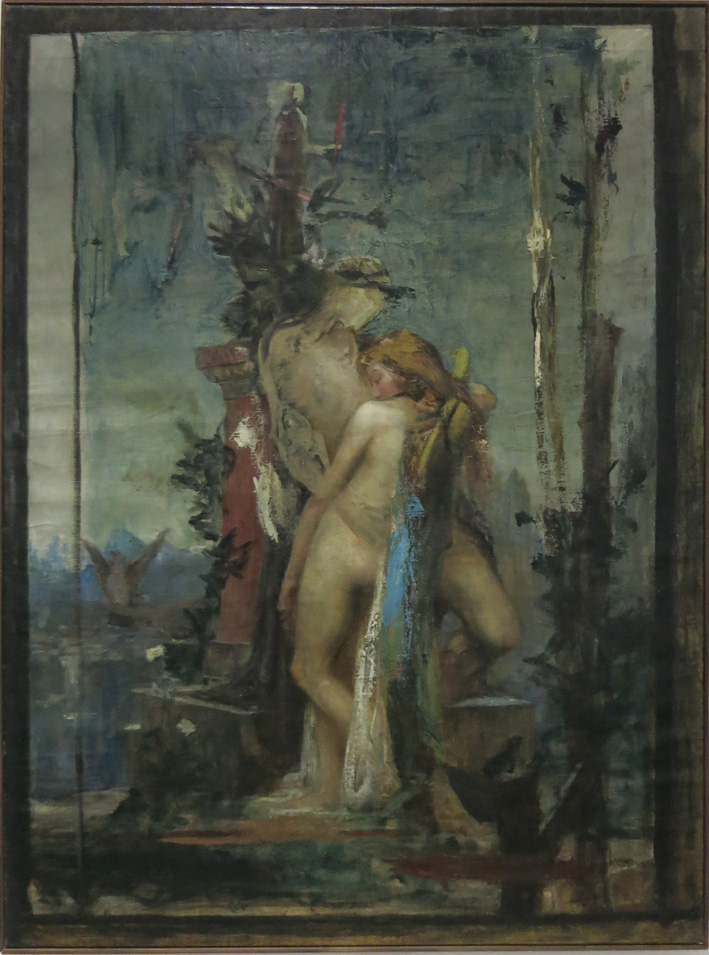 Un tableau de jeunesse de George Desvallières, répertorié au Catalogue raisonné, CR 754, Couple de divinités, vers 1901 (Tome II p. 156), fait partie des œuvres exposées, sous le titre Nymphe sauvée par l'Amour. Retrouvé en 2015 en très mauvais état (image sur DVD, Tome III), nous pouvons désormais l'admirer, après restauration, aux cimaises de cette exposition, au milieu d'autres belles œuvres symbolistes présentées dans cette magnifique fondation.