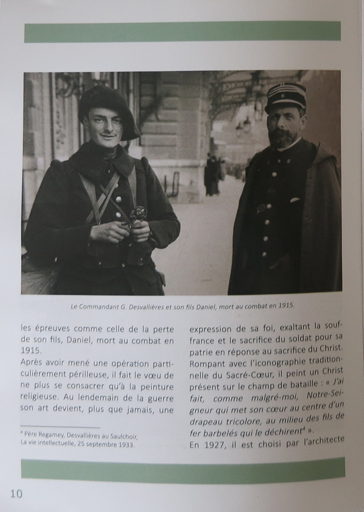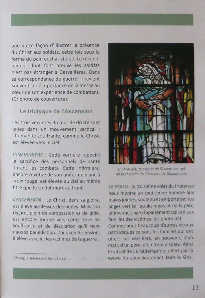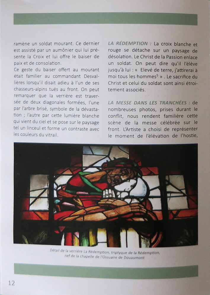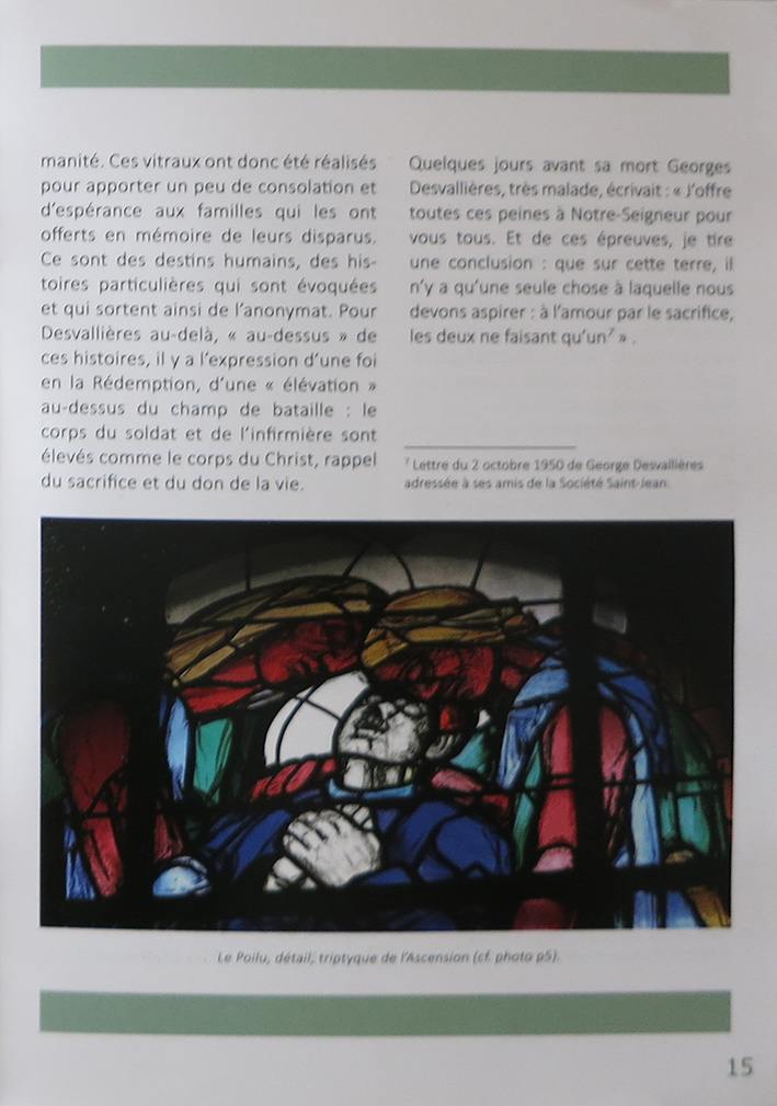Pour cloturer l'année du centenaire de la Grande Guerre, le père Jean-Jacques Danel, aumônier militaire et historien d'art, a composé un numéro Hors-Série de l'EGMIL, Diocèse aux Armées intitulé « La Nécropole de Fleury-Douaumont, Les Vitraux, George Desvallières : peintre et combattant ». (1926-1927, CR 1833-1877)