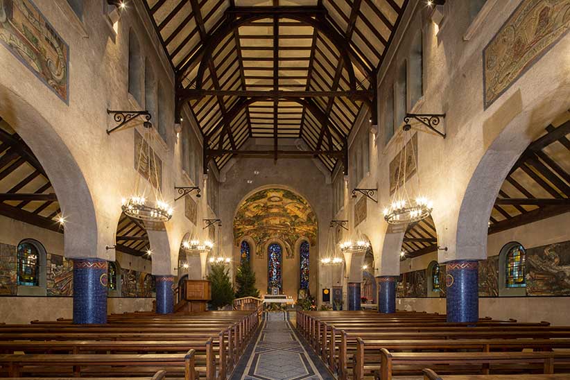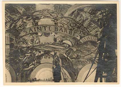 1928. La paroisse, placée sous la protection de sainte Barbe, patronne des mineurs, est située à Wittenheim, au cœur d'une cité ouvrière d'Alsace composée en majorité d'ouvriers polonais. Construite par l'architecte des Mines Georges Debut, l'église est inaugurée le 1er décembre 1929, sa décoration, entièrement confiée au peintre George Desvallières, ne sera achevée que deux ans plus tard.