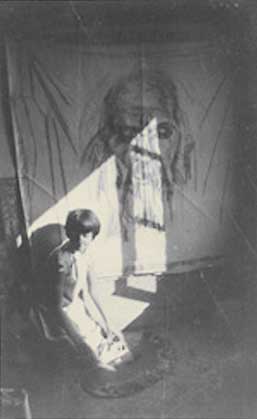 France Desvallières, la fille de l'artiste, devant l'esquisse